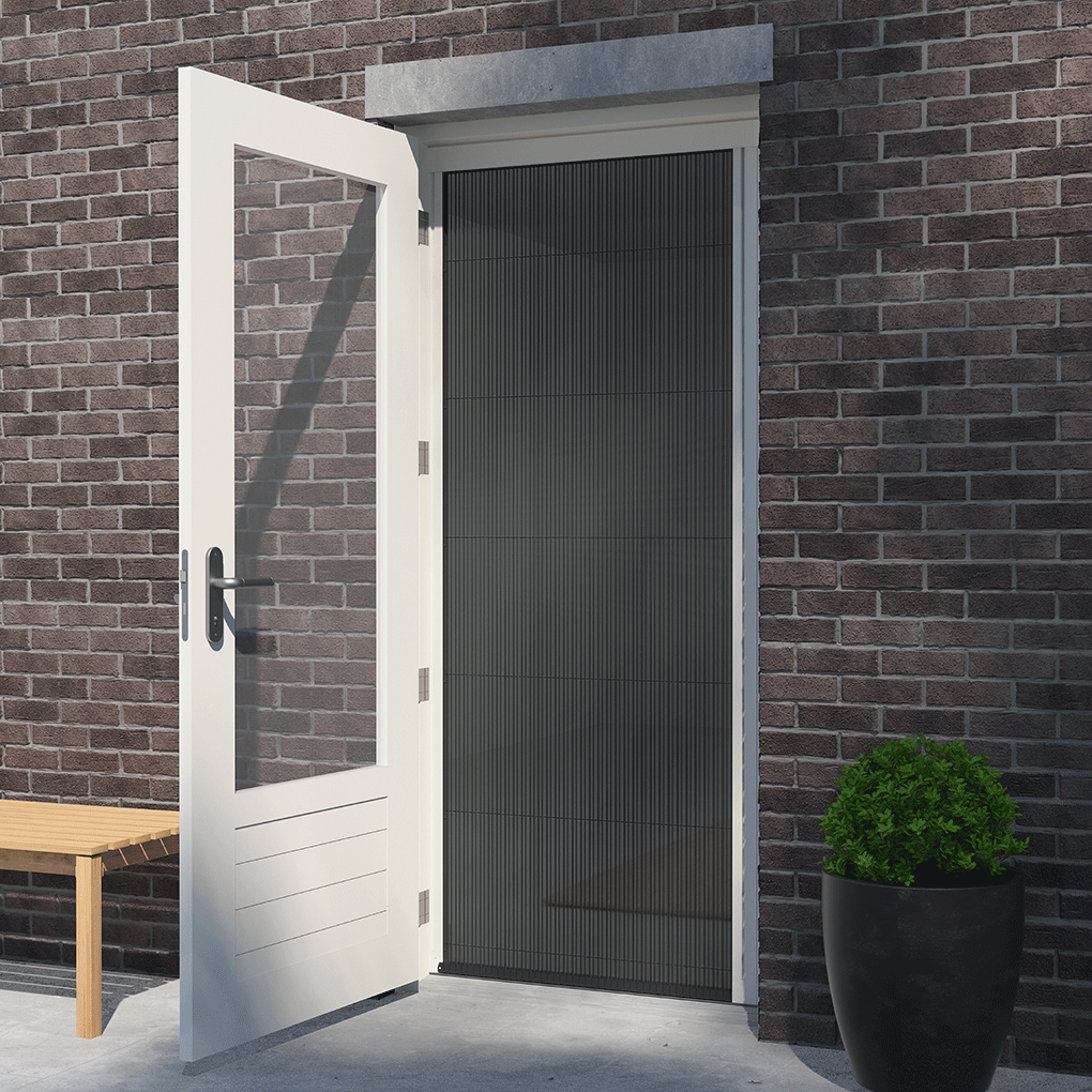 Nooit meer zorgen over ongedierte binnen met de Livn plisséhor Excellent voor deuren. Dankzij de lage ondergeleiding heeft de hordeur een barrière-vrije doorloop. Daarnaast neemt de plissé hordeur, met volledig voorgemonteerde cassette, praktisch geen ruimte in. Ook geschikt voor openslaande deuren en schuifpuien.