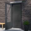 De aluminium cassette en rails zijn uitgevoerd in antraciet (RAL7016). Het zwarte polyester gaas wordt aan de onderzijde geleid door een ketting. Zo blijft het ook op een winderige dag netjes op zijn plek. Daarnaast is de plissé schuifhordeur op iedere gewenste stand open te zetten. Ideaal als je vaak van binnen naar buiten loopt en andersom!