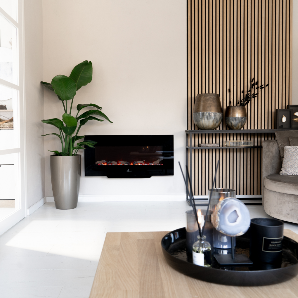 De Livn hanghaard Brixham is voorzien van realistisch 3D LED-vlambeeld, backlight en 2 warmtestanden. De heater zit onder de hanghaard verwerkt waardoor je de rechte zwarte haard ook onder een televisie kunt monteren.